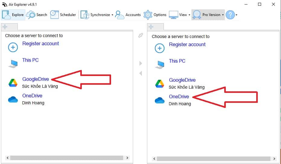 Còn nếu bạn muốn quản lý hay chuyển dữ liệu giữa nhiều các dịch vụ đám mây khác nhau chứ không chỉ One Drive, gộp nhiều tài khoản Google Drive để tăng lượng lưu trữ, hay chuyển file mà không lo về giới hạn file hoặc lưu lượng cần chuyển mỗi tháng thì hãy sử dụng Air Explorer. Tuy nhiên cần chú ý là nếu bạn dùng One Drive for Business thì cần phải trả phí đó nha.