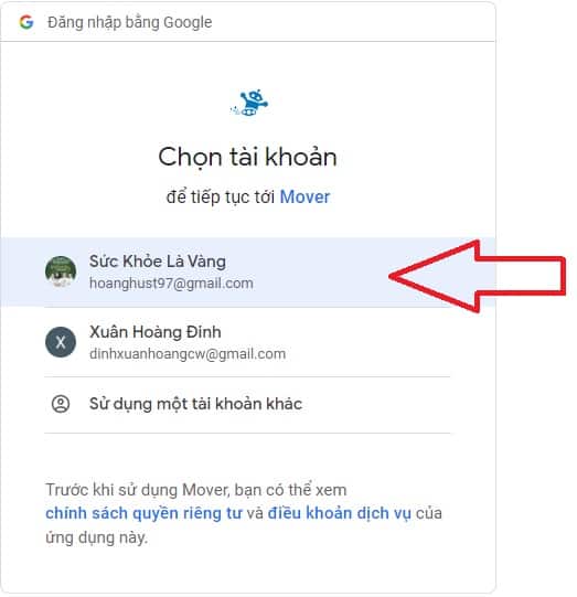 Bước 3: Nhấn Chấp nhận để cấp quyền đăng nhập vào Mover.io
