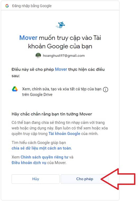 Bước 8: Nhấn vào Cho phép để phê duyệt quyền chép dữ liệu